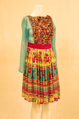 (9) Multicolored silk dress. Jeweled shifon top (Stones, beads, crystals, shwarovski, pearls, etc)