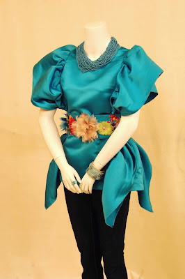 (11) Blue ruffeled on the sides blouse, with beaded belt (3 dimension flowers, crystals, etc)Email for inquiry.