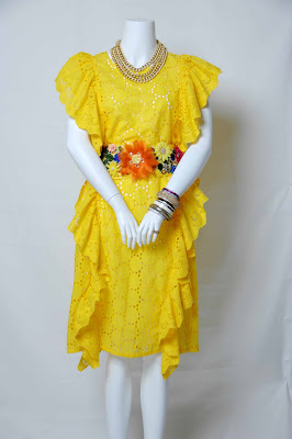 (10) Yellow embroidered dress, with beaded belt (3 dimension flowers, crystals, etc)